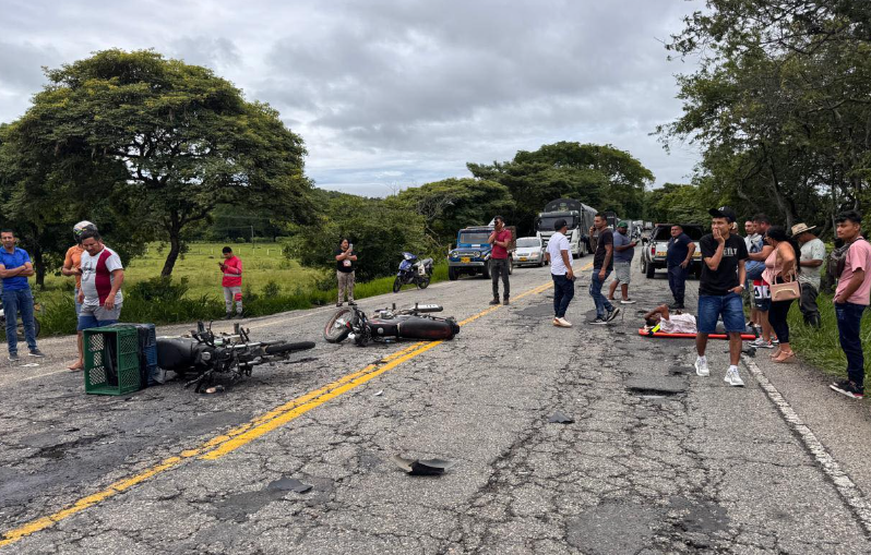 Un violento choque entre dos motocicletas registrado en la tarde del 27 de mayo en el sector del Muese, sobre la vía que conduce de Yopal a Paz de Ariporo, dejó a tres personas con lesiones de consideración.