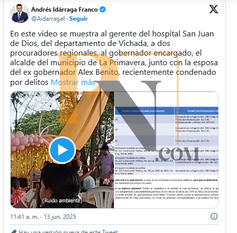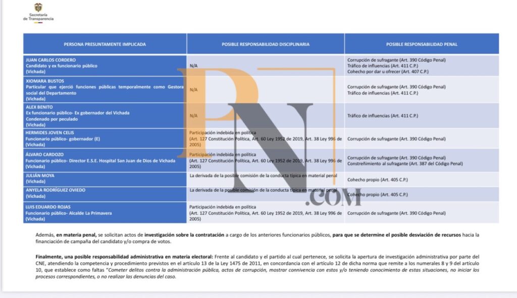 Por otro lado, el secretario de Transparencia, Andrés Idárraga, reveló un video en el que aparecen funcionarios públicos, incluido el gobernador encargado y el alcalde de La Primavera, haciendo campaña descaradamente por Juan Carlos Cordero Rojas. Entre los implicados figura incluso la esposa del exgobernador Alex Benito, condenado recientemente por corrupción.