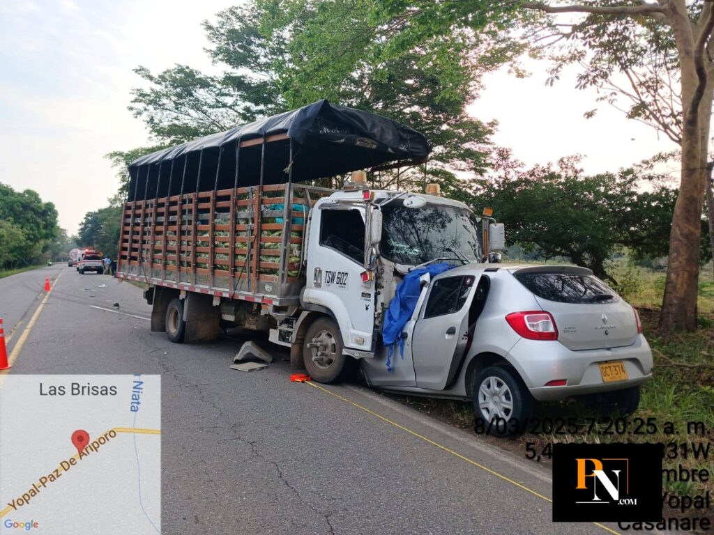 Un siniestro vial dejó dos personas fallecidas la mañana del 8 de marzo de 2025 en la vía Yopal-Pore, a la altura del sector La Niata. Un Renault Sandero con placas GCT 374 impactó de frente contra un camión con placas TSW 602, causando la muerte instantánea de sus dos ocupantes.