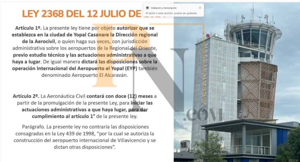 Un año después de la promulgación de la Ley 2368 de 2024, que convierte al Aeropuerto El Alcaraván en internacional y ordena el traslado de la Dirección Regional de la Aeronáutica Civil a Yopal, los avances son escasos y las dilaciones, evidentes.
