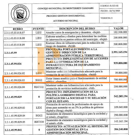 Dicho superávit fue aprobado el pasado 2 de abril por 7 concejales, sin realizar ninguna modificación al proyecto presentado por el alcalde Alejandro Ballesteros. Llama la atención que no se incluyeron partidas para obras prioritarias solicitadas por la comunidad, como la optimización de un acueducto veredal que requería más de 1.000 millones de pesos.