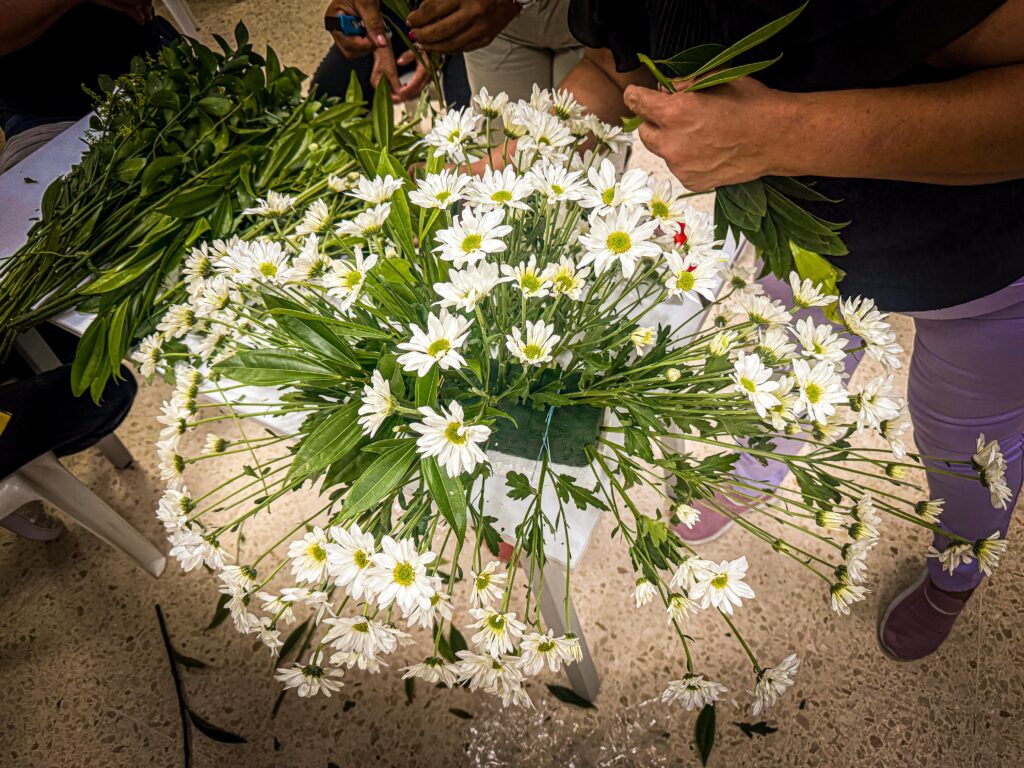 Durante la ceremonia, los familiares realizaron un homenaje con flores blancas, como símbolo de paz y recuerdo.